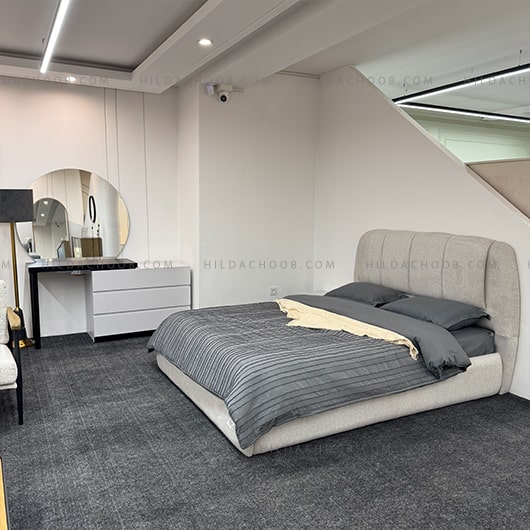 سرویس خواب سوین با طراحی مدرن و مینیمال، انتخابی شیک برای اتاقخوابهای امروزی است. فرم ساده و خطوط نرم در کنار تاج تخت پارچهای، فضایی آرام و منظم ایجاد میکند و بهراحتی با سبکهای مختلف دکوراسیون هماهنگ میشود.