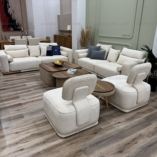 ست ۸ نفره فندی با طراحی مدرن، حجیم و فرمهای نرم، انتخابی لوکس و چشمنواز برای فضاهای نشیمن امروزی است. هماهنگی کامل میان مبلها، تکنفرهها و میزها، فضایی گرم و یکپارچه ایجاد میکند و برای دکوراسیونهای مدرن و مینیمال بسیار ایدهآل است. در نمای این ست از چوب راش گرجستان استفاده شده که علاوه بر زیبایی طبیعی، مقاومت بالایی در برابر فشار و استفاده طولانیمدت دارد. استراکچر داخلی از چوب نراد روس ساخته شده که بهدلیل مقاومت بالا در برابر حشرات و موریانه، دوام و استحکام محصول را تضمین میکند.