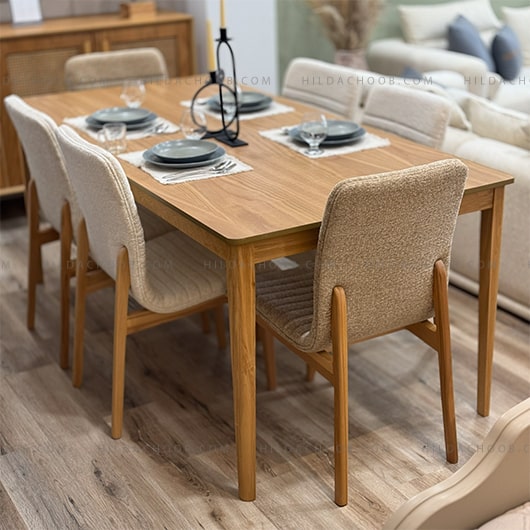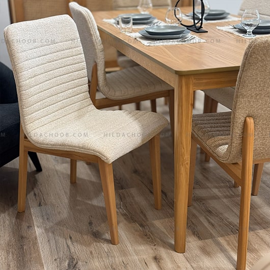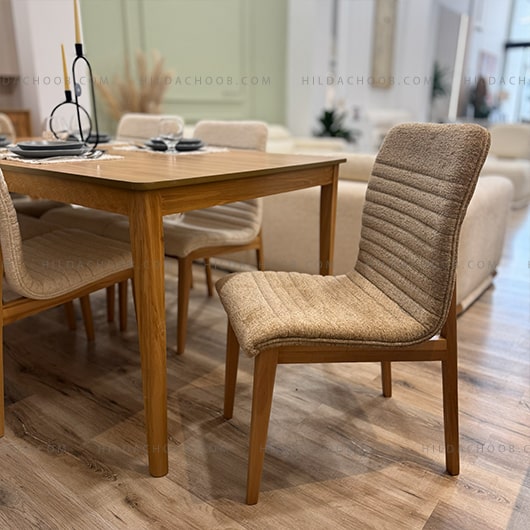 صندلیهای ناهارخوری با پارچه کامفورد پوشش داده شدهاند که علاوه بر لطافت، مقاومت مناسبی برای استفاده روزمره دارند. طراحی ارگونومیک صندلیها، نشیمنی راحت و استاندارد را برای دورهمیهای خانوادگی فراهم میکند.