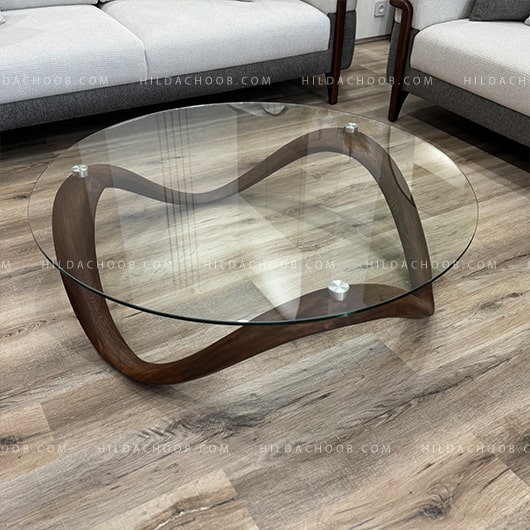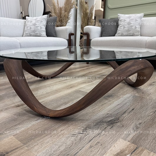 میز جلو مبلی و عسلی بینهایت با طراحی مدرن و ساختار منحصر‌به‌فرد خود، جلوه‌ای خاص و مجسمه‌گونه به فضای نشیمن می‌دهد. پایه‌ی چوبی این میز با خطوط نرم و فرم موج‌دار طراحی شده و صفحه‌ی شیشه‌ای شفاف آن، ترکیبی از سبک مدرن و طبیعی را به نمایش می‌گذارد.